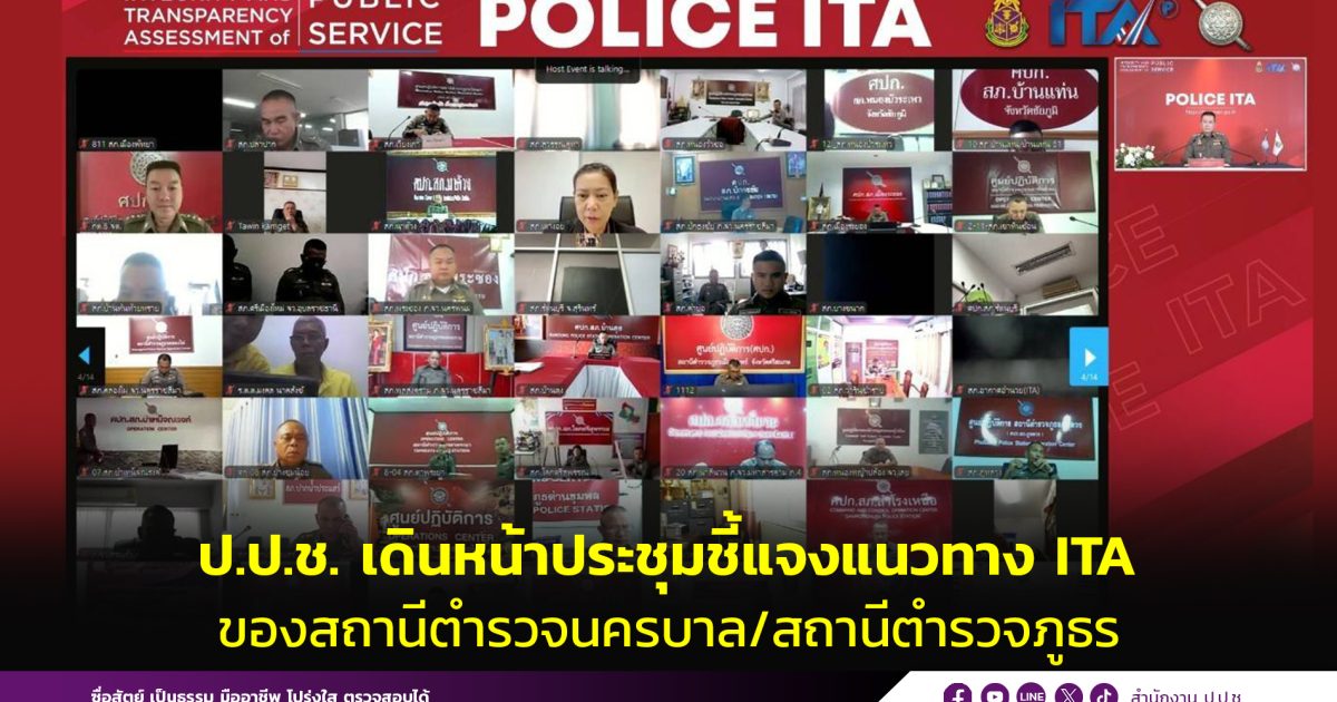 เมื่อวันที่ 26 พฤศจิกายน 2567 สำนักงาน ป.ป.ช. โดยสำนักประเมินคุณธรรมและความโปร่งใส จัดประชุมชี้แจงแนวทางการประเมินคุณธรรมและความโปร่งใส ในการดำเนินงานของหน่วยงานภาครัฐระดับต่ำกว่ากรม (Integrity and Transparency Assessment: ITA) ของสถานีตำรวจนครบาล/สถานีตำรวจภูธร ประจำปีงบประมาณ พ.ศ. 2568 ในรูปแบบ Online ผ่านระบบ Zoom Cloud Meeting วัตถุประสงค์เพื่อชี้แจงแนวทางการประเมิน ITA ของสถานีตำรวจ ประจำปีงบประมาณ พ.ศ. 2568 ให้เข้าใจถึงแนวทาง ขั้นตอน และวิธีปฏิบัติที่ทำให้สามารถขับเคลื่อนการประเมินคุณธรรมและความโปร่งใสให้สำเร็จลุล่วงตามเป้าหมายให้แก่สถานีตำรวจนครบาล/สถานีตำรวจภูธร