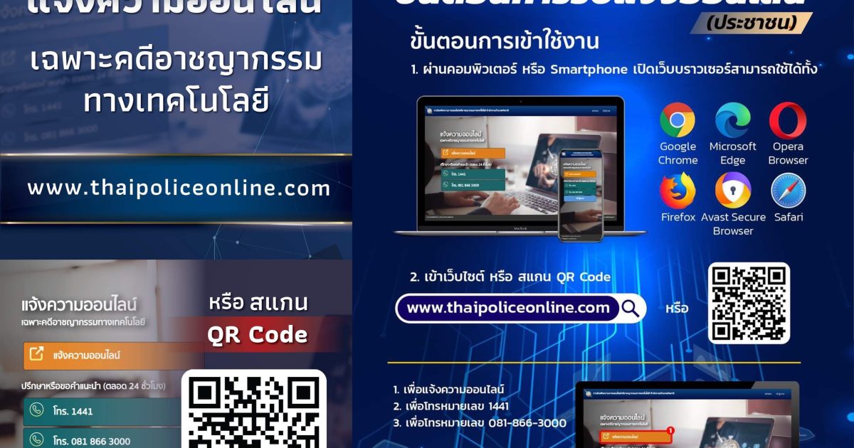 แจ้งความออนไลน์ คดีอาชญากรรม ทางเทคโนโลยี 24 พฤษภาคม 2566 โดย admin / ข่าวประชาสัมพันธ์,ข่าวประชาสัมพันธ์,ข่าวฝากประชาสัมพันธ์ FacebookFacebookXXLINELine